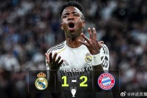 体育资讯04月08日讯 欧冠1/4决赛首回合,拜仁2-1客胜皇马,阿森纳1-0绝杀葡体。赛后,著名评述员詹俊老师发表点评。