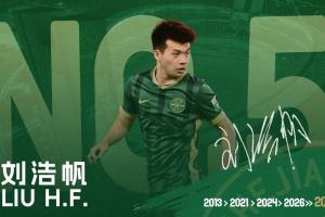 官方:浙江队与国脚刘浩帆续约至2030年